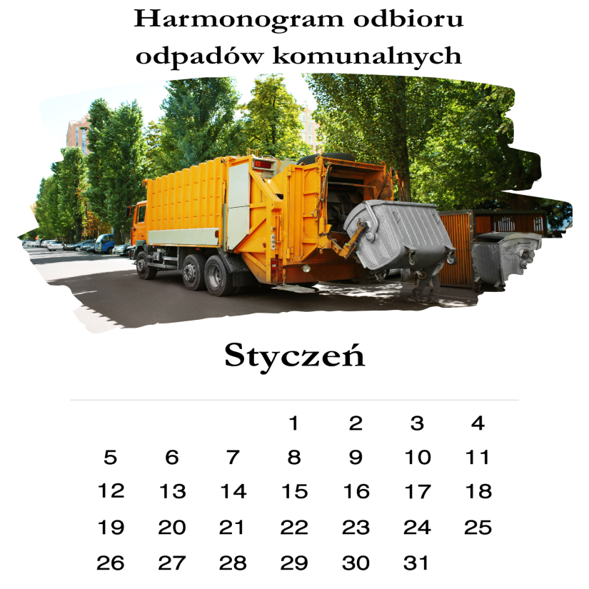 Harmonogram odbioru odpadów komunalnych na styczeń 2026 roku